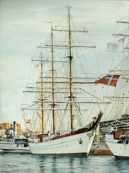 "Tall Ship "Gorch Fock"" by Paul McGehee. The sleek German training ship is portrayed during a visit to Baltimore harbor.